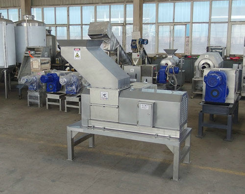 =3、相對于鼠籠式破碎機,該擺錘破碎機應(yīng)用范圍更廣泛。針對纖維物料,鼠籠式破碎機由于篩網(wǎng)容易堵塞,效果不是特別好,而該擺錘破碎機無論物料含不含纖維,篩網(wǎng)都不會堵塞,比如生姜、洋蔥、芹菜等,特別是針對蘋果梨等塊狀物料,篩網(wǎng)3mm孔徑也可以,破碎顆粒想多細(xì)就多細(xì),并且篩網(wǎng)可快速拆卸更換。